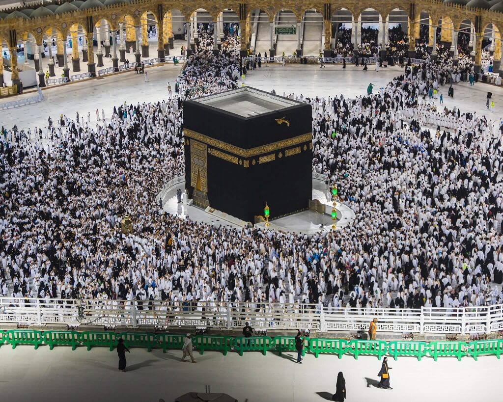 One of the Five Pillars of Islam requires every Muslim to perform the Hajj pilgrimage to Mecca at least once in his or her lifetime if they are able to do so. Multiple parts of the Hajj require pilgrims to walk seven times around the Kaaba in a counter-clockwise direction. This circumambulation (Tawaf), is also performed by pilgrims during Umrah.
